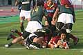 力の差が感じられた前半だったが、後半、九電が息を吹き返した。後半開始早々から九電FWが奮起。トヨタのミスにも付け込み、3分にはモールを押し込み6松本がトライ。17分にも2谷口が跳び込むなど、ミスの目立つトヨタに対して、九電の正確で忠実なプレーが得点に結びつき、後半の半ばで19-22とトヨタを追いつめた。しかし、攻め続けたい九電を、トヨタ10正面が正確なキックで押し返し、逆に22分にはトヨタ18谷口がトライ。その後の九電の攻撃を、分厚いディフェンスでPG1本でしのいだトヨタが逃げ切った。