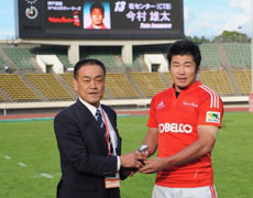 2009.10.13 [TUE] 協会リリース Twitter Facebook Google+ LINE 5節 マッチ&会見リポート(神戸製鋼 27-24 NEC) C:2009, JRFU(Photo by A. HASEGAWA) 神戸製鋼コベルコスティーラーズ 27-24 NECグリーンロケッツ 【week5/2009年10月11日(日) at兵庫・神戸総合運動公園ユニバー記念競技場】 4分、神戸製綱がNEC陣22mラインでラックを形成、ラックから出たボールをつないで、SH後藤→SO菊池→CTB今村とつないで、最後CTB13今村が相手ディフェンダーにつかまりながらも左隅に倒れこんでトライ。(G不成功5-0) 7分、神戸製綱SO菊池が、ハーフウェイライン付近より右サイドへロングキック、そのボールをWTB14大畑がさらにインゴールへグラバーキック、そのまま右隅へトライ。(G不成功10-0) 序盤は神戸製鋼ペースも、コンバージョンの連続ミスはここ近年の課題である得点力不足が解消されていないことを露呈してしまう。10分、NECは、神戸製綱の反則から22m付近中央のペナルティゴールをSOヤコが決め、3点を返す。(10-3) 27分、NECが神戸製鋼陣ゴール前中央ラックから右展開、最後はWTB14窪田が右隅へトライ。(G不成功10-8) 34分、神戸製鋼陣内22m右ライン付近のラックで、神戸製綱がハンドの反則。PGを選択したNECはSOヤコが難なく決め、10-11と逆転し前半を折り返す。 後半もNECペースでゲームが進み、NECのプレッシャーに堪らず反則を繰り返した神戸製綱は、41分、48分とPGを決められ、点差を拡げられる。(10-17) 55分、NECは、神戸製鋼陣22mライン付近ラックから右にラインを敷いていたBKへ細かく繋ぎ、最後はWTB14窪田が右隅にトライ。(G成功10-24) 早く点差を詰め、勝利への可能性を繋ぎたい神戸製鋼は、59分NEC陣内ゴール前5m中央付近ラックからSH9後藤から途中出場の元木→CTB12山本へ繋ぎ、そのまま左隅へトライ。(G成功17-24) しかしゲームの流れはややNEC。幾度となく神戸製鋼陣内に迫り、チャンスを窺うもトライに結びつかず。62分には自陣5m中央付近からSOヤコがPGを狙うも不成功。FW戦で優勢ながら、攻めあぐねている感が窺える。 70分、自陣22mライン付近でNECが反則を犯す。PGを選択した神戸製綱はFB15デルポートが決め20-24。劣勢ながら流れを少しずつ引き寄せる。 攻めることでボールをキープ、勝利の糸をたぐり寄せたいNECは、神戸製鋼陣内で執拗なFW戦を展開するも、78分神戸製綱陣内22m付近で反則。素早くリ・スタートしたSH後藤から元木に繋がったボールは、ラストパスを受けたCTB今村の50m以上の激走により、逆転トライを生んだ。(G成功27-24) ブレイクダウンの攻防や組織プレーで、神戸製鋼を上回っていたNECだが、出来が悪くても"それなり"の展開に持ち込める神戸製鋼の"老獪さ"とワンチャンスに力を発揮できる今村の勝負強さに負かされたとしか言いようのないゲームであった。(望月 康平・廣島 治) 岡村ヘッドコーチ(左)、熊谷キャプテン ◎NECグリーンロケッツ ○岡村要ヘッドコーチ「非常に悔しい、こんなに悔しいゲームはない。この一言につきます。 最初の10分で浮ついた気持ちか、あるいは構造的な問題か、2本とられた。しかしその後はNECが勝ちパターンに戻ってくれて、そのことに関してはうれしかった。しかし最後のプレッシャーで勝ち切れなかった。 どのチームもプランやストラクチャーはある。エリア+時間、それに点差との兼ね合い、そういったヤマのところで悩んだりとかで統一感がなかったと思う」 ○熊谷皇紀キャプテン「最初の2トライは受けてしまったが、風上で相手陣で仕掛けて行ってやりたいプレーはできた。しかしラインアウトなどでの精度は甘かった。後半の最後は点差、時間を考えながらやっていたが残念、悔しいです」 ──神戸製鋼について? ○岡村ヘッドコーチ 「神戸さんはこちらが穴をつくってしまうと、そこを攻めてくる。隙がないチームで、伝統的にそういったいいものが残っているチームだ」 ○熊谷キャプテン 「特に意識はしていません、ただ、負けられない相手だなと思う」 平尾GM兼総監督(左)、松原ゲームキャプテン ◎神戸製鋼コベルコスティーラーズ ○平尾誠二GM兼総監督「見ての通りという感じ。最後はツイテいたが、内容はほめられたものではない。しかし5点(勝ち点)を取ってくれたのは感謝している。2トライ取った後にチャンスがあるのにゲームの作りがよくなかった。簡単にテリトリーを取られたりと少しプレーが軽くなった。後半は攻められたのによくしのいだ。内容は良くないが、結果的にこうなるのは力があるのかなと思う」 ○松原裕司ゲームキャプテン「NECさんとはいつもこういった感じのゲームが多い。いい流れが最後に神戸製鋼に来た。後半は点差を詰めていって最後にひっくり返す作戦で、いいプレッシャーを与えられたと思う」 ──2トライとった後の失速の原因は? ○平尾GM兼総監督 「その後、ラインアウトでチャンスがあったのに軽く点を取りに行き過ぎた。モールでだめならと、切り替えができない。時間をかけてトライを取るラグビーも必要、簡単に取れる雰囲気があったのかもし
