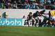 2009.12.01 [TUE] 協会リリース Twitter Facebook Google+ LINE 8節 マッチ&会見リポート(トヨタ自動車 26-0 クボタ) C:2009, JRFU(Photo by S. MARUYAMA) トヨタ自動車ヴェルブリッツ 26-0 クボタスピアーズ 【week8/2009年11月29(日) at大阪・近鉄花園ラグビー場】 1ヶ月の休止期間を経て、ジャパンラグビー トップリーグ2009-2010が再開された。 前半戦を終え、日本代表キャプテンの菊谷を擁するトヨタ自動車ヴェルブリッツ(勝点20、リーグ戦7位)対SOドゥラームのキックが攻撃の軸になるクボタスピアーズ(勝点20、得失点差でリーグ戦6位)との対戦。 前半、トヨタは、上位進出を目指し、試合開始早々から一気にペースを上げ2分、ゴール前5m左ラインアウトからラックの後、NO8菊谷があっさりと左中間にトライ、ゴールもSOアイイが決め7-0とする。この後しばらく両チームとも互いにミスが多くゴールを割ることができなかったが、加点したのはトヨタ。21分、ゴール前13m中央ラックからCTB12番 難波が抜け出し中央にトライ、ゴールも決まり14-0とリードを広げる。一方、クボタは、密集への集散がトヨタに一歩遅れ、前半だけで8個のPKを犯し、攻撃のリズムを崩すなど、スタンドを埋めた青い帽子の応援団の声援に応えられない。トヨタは、前半終了間際の38分にも、ハーフウェー中央付近のラックから日本代表のLO4番 北川が持ち出した球を受けたルーキーのFB15番 城戸のキックをFL7番 中山が左中間インゴールで押さえ、21-0で前半を折り返した。 後半、クボタの巻き返しが期待されたが、先に点を取ったのはまたもトヨタ。5分、ハーフウェー中央付近のラックから右展開しWTB14番 イェーツが右隅にトライし26-0と突き放しにかかる。クボタも意地を見せ、これ以降、チーム全員で取り組むディフェンスで、トヨタに得点を許さず、必死の追撃を試みる。しかし、それもゴール前25m付近まで。結局、試合はトヨタの完勝に終わった。 MOMには、トヨタの菊谷選手が選ばれた。(大阪府協会 山林 右二) 山神監督(右)、荻原キャプテン ◎クボタスピアーズ ○山神孝志監督「クボタは大阪に本社があり、今日は沢山のファンの声援をいただきながらの敗戦で大変残念な思いをしている。前半立ち上がりのところでクボタにペナルティーが続き、あっさり先制されてしまった。その後もブレイクダウンでトヨタに押されて、ほとんど自陣での闘いを強いられ、ペナルティーゴールも狙えないような状態が続いた。結局、自分達のゲームプランで全く闘えなかったのだが、よいところもあったので、特にブレイクダウンなどこれからの試合に向けて修正をしていきたい」 ○荻原要キャプテン「監督の言うとおりで、すべてが噛み合っていなかった試合だった。無得点に終わったという結果を真摯に受け止めて、次の試合に向けて修正していきたい」 ──ドゥラームはチームにとって軸となる選手だが、力が活かせていなかったように思うが? ○山神監督 「ドゥラームの前半でのシンビンは痛かった。また、トヨタもPGを意識してクボタ陣ではペナルティーをおかさないように注意をしていたようだ」 ──やりたかったゲームを封じられたということか? ○山神監督 「ブレイクダウンで押しこまれてしまったのが大きい。また、ハイパントでもコンテストすべきところをキャッチャーとサポーターの呼吸があわず、トヨタにボールを奪われてしまうなど、チグハグが目立ち、攻撃するスペースをつくれなかった」 石井監督(左)、麻田キャプテン ◎トヨタ自動車ヴェルブリッツ ○石井龍司監督「シーズン後半最初の試合で、これからトップ4を目指していく上で大事な試合だったが、選手もその点を意識してよく頑張ってくれた」 ○麻田一平キャプテン「ウインドウマンスで1ヵ月時間があったので、チームの中でよく話し合って改善に向けて努力してきた。この試合クボタを0点に抑えたことは評価できると思う。しかし、まだまだ修正するべき点もあるので、次の試合に向けて修正していきたい」 ──この一か月でどこを修正したのか? ○麻田キャプテン まず、アタックの精度を上げたことだ。それから、DF面では、キックやブレイクダウンでの反応を良くするように努力をした。 ──今日の試合、ウインドウマンス前とは選手の構成を変えたように思うのだが? ○石井監督 体調を崩した選手もおり、現時点でのベストの選択をしたつもりだ。特に、ドゥラームを意識した選手起用はしていない。選手個人ではなくて、チームで組織DFをするのがトヨタのラグビーだ」