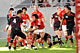 2009.12.29 [TUE] 協会リリース Twitter Facebook Google+ LINE 12節 マッチ&会見リポート(神戸製鋼 70-10 コカ・コーラウエスト) C:2009, JRFU(Photo by A. HASEGAWA) 神戸製鋼コベルコスティーラーズ 70-10 コカ・コーラウエストレッドスパークス 【week12/2009年12月27日(日) at 兵庫・ホームズスタジアム神戸】 他力本願ながら、プレーオフ進出にわずかな可能性を残す神戸製鋼と、日本選手権出場権を争うワイルドカードトーナメントでの組み合わせを少しでも優位にしたいコカ・コーラ。コーラが‘ジャイアントキリング'ぶりを発揮するか、興味深いカードであったが、とにかく勝ち点5(4T以上の勝利)を目指した神戸製鋼が、DFの甘さをみせながらも積極的なアタックを繰り返した結果、思わぬ大差がついたゲームとなった。 序盤は、両チームとも雑なプレーが目立ち、5分コカ・コーラのキック処理の甘さを突いたWTB大橋のTを皮切りに、神戸製鋼が7分にも連続Tを挙げ14-0とするも、ひとつ間違えればコカ・コーラに‘逆の目'が出る可能性さえあった。直後のキックオフで混戦をつないだコカ・コーラが、SOウェブのキックパスをキャッチしたWTB14築城昌拓がトライした場面(G不成功5-14)までは、どちらへ転ぶかわからない且つ大味なゲーム展開。 しかし、勝ち点5を目指す神戸製鋼のアタックに対する集中力が流れをグッと引き寄せ、14、19分とトライを重ね、早々にボーナスポイントを獲得。その立役者はSO森田。効果的なキックによってエリアマネジメントを楽なものにし、コカ・コーラFWのプレッシャーを散漫なものにさせる。22分には大橋3本目のトライにつなげるキックパスなど、今シーズン一番の出来(平尾GM談)で、途中シンビンによる一時退場もあったが、これもご愛嬌。 後半にはFBヒルゲンドルフの縦突破を起点に、‘法政黄金期'を支えたNO.8伊藤からSH苑田へのつなぎでトライが生まれたり、PR安江が巧みなステップでトライを奪うなど、神戸製鋼にとってプラン通りの出来。序盤、不安定だったDFも、得点を重ねる毎に安定感を取り戻し、ファイナルスコアは10トライを奪って70-10の完勝。マン・オブ・ザ・マッチは3トライの大橋に譲ったものの、‘今日は100点'と平尾GMに絶賛されたSO森田の活躍も目立ったゲームであった。(廣島 治) 向井監督(右)、三根キャプテン ◎コカ・コーラウエストレッドスパークス ○向井昭吾監督「ウェブをSOに入れて、仕掛けるラグビーをしたかったが、ラックエリアで神戸製鋼のラグビーをされてしまった。もう1試合あるから頑張りたい」 ○三根秀敏キャプテン「前半から主導権をとられ、自分たちの試合ができなかった。もう1試合あるのでチャレンジしたい」 ──神戸製綱の強かった所は? ○向井監督 「セットプレー、特にラインアウトのプレッシャーを受けたことや、ラックエリアの速い球出しをされたことだ」 平尾GM兼総監督(左)、松原バイスキャプテン ◎神戸製鋼コベルコスティーラーズ ○平尾誠二GM兼総監督「これまで、練習でやろうとしている事がなかなかできなかったが、このゲームを大勝したことで、いい意味での自信にしていきたい」 ○松原裕司バイスキャプテン「本来自分たちが持っている力を今日は出せた。(難敵)コカ・コーラ相手に、大差で勝てたのは自信になった」 ──これだけのトライを取れたのはなぜ? ○平尾GM兼総監督 セットプレー、特にラインアウトで優位に立てたこと。個々には大橋君がよくやった。相手に良いタイミングでボールを与えなかったのが、トライを量産できた理由だと思う」 ──SO森田恭平選手の評価は? ○平尾GM兼総監督 「森田君にとっての課題はディフェンスだったが、克服できていた。100点満点をつけてもいいくらいの出来。これまで彼の調子が悪かったから、今日の活躍はチームにとって大きな収穫だ」 ──マン・オブ・ザ・マッチ 大橋由和選手の評価は? ○平尾GM兼総監督 「総合的にレベルの高い選手。森田、大橋世代と言えるぐらい、彼も非常に成長してきた選手。ゲーム(の流れ)を見る目を持っている。ハイボールなど、そういう意味でのプレーがうまくなってきている。 ──大畑大介選手の怪我の調子は? ○平尾GM兼総監督 「1~2日では治らない。日本選手権には間に合うと思うが」 ──今日のゲームはモチベーションが難しいゲームではなかったか? ○松原バイスキャプテン 「特にチームのモチベーションが低いということはない。相手がどうであれ、練習通りのことをするのが重要だ」