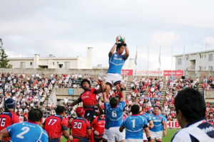 ![]() ![]() ファーストステージ・第3節 プールB トップリーグ第3節、各チーム2試合を消化して今季のチーム状況が明確になってくる頃であろう。クボタは初戦のヤマハ戦で先制トライを奪い善戦するも反則とハンドリングエラーで自滅したが第2節では立川のPGで近鉄に競り勝った。東芝に勝って波に乗りたいところ。 9月とはいえ台風18号の影響で蒸し暑い。試合に先立ち、前座試合として神奈川県ラグビースクールの小学校1年生の試合が行われた。チビッコラガー達のプレーにスタンドや、試合前の選手達から大きな声援が送られていた。その子供達のエスコートで入場し、16時に東芝のキックオフで試合は開始された。 9分、クボタは東芝陣内深くにけり込んだボールを拾うと素早く右に展開し、最後は右サイドゴール前ラックからHO立川直道がトライ、SO立川理道のゴールも決まり兄弟による得点で同点に追いつく。ここからはクボタのペース。22分、28分と立て続けにSO立川のPGで逆転し、31分にはクボタが東芝陣に入りモールサイドの連続攻撃から、素早いバックスの展開で左ライン攻撃でフリーになったCTB12マプスアへのパスが回り左隅にトライ。SO立川のゴールも成功して20-7とリードを広げた。 東芝は相手陣22m付近でPKを得るとラインアウトからトライを狙うがクボタフォワードの粘り強いディフェンスに我慢しきれずバックスに回すものの、ノッコンなどミスがあり得点できない。前半終了間際にSOヒルのPGを返すのがやっとで前半は20-10で折り返す。 後半も、クボタが東芝陣で優勢に試合を進めるが、後半9分にクボタ陣にけり込まれたボールを東芝がキックチャージしてすぐに展開。最後はWTB11豊島が左中間にトライして、SOヒルのゴールも決まり20-17と迫る。しかし、クボタが攻めて東芝陣でのせめぎ合いが続く。 東芝はなかなかクボタ陣に入れずこのままクボタが逃げ切るかと思われたが36分に東芝は一瞬の隙を突き、後半14分から入れ替わったスタンドオフの森田が自陣10m右サイドから相手陣ゴール前にキック。そのボールをFB23ブーナとWTB11豊島が奪い、最後はブーナが左隅にトライをしてついに東芝が逆転する。クボタも残り4分、東芝陣深くに攻め入るが最後はペナルティを与えてしまい、ノーサイドのホーンが鳴った。 東芝はクボタの素早いアタックや縦の攻撃に苦しみながらも後半無得点に抑え逆転勝ちした。しかし、クボタは東芝に負けないブレイクダウンや素早い展開で、チーム力に差がない印象を受けた。東芝は後半クボタに得点を許さないディフェンス力を発揮した事が最後の逆転トライに繋がった試合であった。マン・オブ・ザ・マッチは、コントロールされた切れの良いキックで常にポジショニングを優位にしていたクボタのSO立川理道が受賞した。 ![]() ![]() ● 記者会見ダイジェスト ●