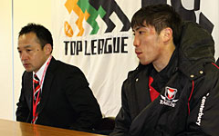 キヤノンイーグルス ![]() 永友洋司監督(左)、和田拓キャプテン 永友洋司監督 「本日は4トライ以上をとってボーナスポイントをとって勝利すること、これが目標であった。結果として最終節の目標を達成することができなかったことは残念ではあるが、トライ数で相手を上回ることができたことはポジティブにとらえているし、次につながる部分だと思っている。選手たちには『今日が最後であるという気持ちで試合に挑もう』と言っていた。硬さも見られたし、自分たちのシンプルなミスから得点をとられたということもあり、次に向けてしっかりと修正していかないとまだまだ戦えないかなと感じている」 和田拓キャプテン 「今日の結果は非常に残念だが、後半の最後で粘れたことは、今までと比べて成長できたかなと思う。入りの部分で受けてしまうところがあったし、ブレイクダウンで押し込まれた部分もあった。この辺りを正確にやっていって、まだまだ強くなっていきたいと思う。しっかりと前を向いて次の試合に向けて頑張っていきたい」 ──ワイルドカードに向けての修正点とフォーカスすることは? 永友監督 「アタックという部分でこだわりを持ってしっかりと修正していかなければならないと思っている。もう一つはディシプリンのところをしっかりと立て直していく。一方、今年も今日先発のSH天野をはじめ若い選手が非常によくチャレンジしてくれている。若い力も含めながらターゲットはもちろん日本選手権、そこに向けて頑張っていきたいと思う」 ![]() トヨタ自動車ヴェルブリッツ ![]() 廣瀬佳司監督(左)、上野隆太キャプテン 廣瀬佳司監督 「最終節の今日の試合は、1点差でもいいので必ず勝って6位を確保しようという強い気持ちで臨んだ。厳しい試合だったが、よくディフェンスし勝ち切ってくれた。前半は準備してきたことができたし、積極的にボールを動かすことができ、いい立ち上りだと思っていたが、後半はボールが継続できなかったり、攻めどころで反則を犯してしまったりしてディフェンスの時間が長かったが、選手たちはよく頑張ってくれたと思う。最後3連勝できたので、このいい流れでワイルドカード、日本選手権に向けて頑張っていきたい」 上野隆太キャプテン 「接戦になると予想していた通り、タイトなゲームであった。前半は自分たちがゲームをコントロールできスコアを重ねられたことは良かったと思う。後半は自分たちのミスから自陣でディフェンスする時間が長かったが、しっかり守り切ることができた。次のワイルドカードからはトーナメントの一発勝負なので、一戦一戦を大事に戦っていきたい。個人的には、地元の西京極で勝利できたことをうれしく思う」 ──3連勝については? 廣瀬監督 「セカンドステージが始まって4連敗していたが、内容的にはそんなに悲観的になっていなかった。やはりゲームの綾の部分でトップ4のチームとは差があった。それはゲームの流れをどう変えることができるかという力。この差を感じていたので、何とかこの部分でみんながまとまれば結果を残せるのではないかと思ってやってきた。最近リーダーを中心にしっかりできるようになってきた。これが3連勝につながっていると思う」 ──SOマッキンタイアー選手の欠場の影響は? 廣瀬監督 「マッキンタイアーはケガで離脱している。その穴は文字が十分埋めてくれていると思う。彼は、練習でもリーダーシップをとってくれている。この3試合で非常に伸びたし、今日のゲームコントロールも非常に良かった。今日のマン・オブ・ザ・マッチに選ばれてよかった」 ![]() ![]() ![]() ![]() ![]() ![]() マン・オブ・ザ・マッチはトヨタ自動車ヴェルブリッツ、SO文字隆也選手(記事:高橋茂治 写真:小巻真司 広報担当:酒井弘達) |