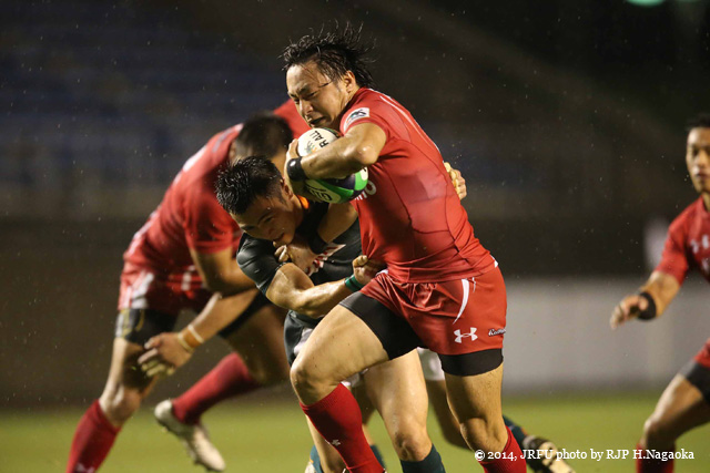 ![]() NTTドコモレッドハリケーンズ 19-31 トヨタ自動車ヴェルブリッツ ファーストステージ・第3節 プールB 夕方からの雨でスリッピーなグランド状態のなか、NTTドコモとトヨタ自動車の試合が行われた。 前半、トヨタ自動車のキックオフで試合開始。トヨタ自動車はキックオフの勢いを駆って連続攻撃を加え、NTTドコモゴール前で中央の密集からSO文字隆也にボールが渡り、最後はHO上野隆太が左隅にトライ、SO文字のGKも決まり(0-7)とトヨタ自動車が序盤からペースを掴む。 この均衡を破ったのはNTTドコモ、29分ゴール前のラックからSO小樋山樹が左隅にトライ(12-14)、さらに36分、14番WTB渡辺義己がトライし逆転(ゴール)、19-14とこの試合初めてNTTドコモがリードを奪う。 後半、再開後しばらく試合は膠着するが、先取したのはトヨタ自動車、9分に12番CTBカーペンターが自陣でラインブレイク、13番CTBイェーツがゴール前まで迫り、最後は右WTB松下馨がインゴールで押さえトライ、GKも決まり19-28とし、ボーナスポイントを獲得。19分にはトヨタ自動車SO文字がPGを加え19-31の12点差とする。 ![]() ● 記者会見ダイジェスト ●