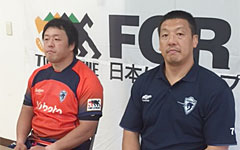 Honda HEAT ![]() 藤本ヘッドコーチ(右)、天野キャプテン 藤本知明ヘッドコーチ 「今日の試合のためにご協力いただいた皆様、ありがとうございました。今まで盛り上がっていたように良いゲームをしたかったが、得点が競るゲームにできず、残念です。前半、ボールキープできなかったのが敗因です。修正して行きたいと思います」 ──攻め込んで獲り切れなかったが? 「一つは獲り急いだことがあります。トップリーグでは、なかなかチャンスは来ないので、出たときに仕留めることが必要です。誰か無理してオフロードしようとして、ターンオーバーされました」 ──今シーズンに向けて? 「チームとして、春からスクラムは向上していますが、一貫性は不足しています。良いベースがあると次に繋がると思います。ディフェンスは整備しなくてはなりません。速いラックからクイックでボールを出していくために、ラックの精度を高めて、スペースに運びたいと思います」 天野豪紀キャプテン 「本日はありがとうございました。クボタさんに対して、しっかり接点で激しくボールを出してフィジカルバトルをして行こうとしましたが、セットピースなどでボールキープできず、自分たちの波にのりきれなかったのが、この点差に繋がったと思います。来週、もう1試合ありますので、必ず勝って本番に臨みたいと思います」 ──今シーズンに向けて? 「セットピースのところは、もっと自信をもっていきたいです。ドライビングモールも通用するところ、手応えはありました。80分、しっかり規律を守ってプレーして行けるよう、課題として修正していこうと思います」 クボタスピアーズ ![]() 石倉監督(右)、立川キャプテン 石倉俊二監督 「本日は日本協会、関東協会、たくさん来てくださったファンの皆様、ありがとうございました。シーズン中盤に入りましたが、力の差を見せつけて、しっかり勝つことができました。継続して取るディフェンスで相手の強い外国人をしっかり前で止めることができました」 ──点差はついたが、テリトリーは? 「本人たちがどうとらえているかだが、テリトリー獲得は上手く行かなかったと思います。前半、トライを獲られたところに象徴されていたと思います」 ──立川理道選手がジャパンから帰ってからは? 「帰ったら、すぐやらせます(笑)。本人も休むつもりは全くないでしょう。SO、CTB、どちらでもできると思います」 立川直道キャプテン 「今日ラグビーが素晴らしい環境でできたことに感謝します。Hondaさんの試合の傾向をしっかり分析して、練習して来たことを出せました。トップリーグの試合は続くので、相手がどこであっても、できるようにしたいと思います」 ──収穫と課題は? 「ディフェンスは良くなってきたが。自分たちのミスで獲れなかった場面がありました。上のレベルでは、ディフェンスの時間が増えるので、消耗します。課題として修正して行こうと思います」 ──弟の理道選手がジャパンで頑張っているが? 「周りは何も言わないですが、前の試合も痛かったんじゃないかと思います。個人的には彼が頑張っているから、負けられないと思います」 マン・オブ・ザ・マッチはクボタスピアーズ13番、ライオネル・マプー選手 |