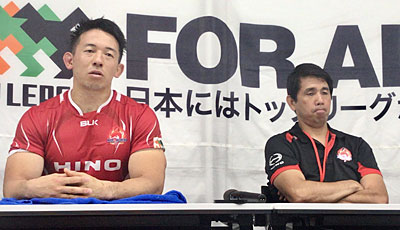 日野レッドドルフィンズの細谷監督(右)、村田キャプテン