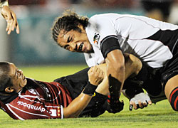 トンガ出身選手というと、ボールを持っての突破力に特徴がある選手が多いが、“コリー"ことホラニはボールを持たない時のプレーぶりにも特徴がある。