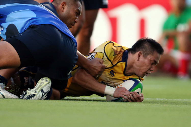 後半34分のWTB小松主将のトライ(写真)で開幕戦勝利に近づいたかに思われたリコーだが、FW戦の劣勢が響いて悔しい逆転負け |